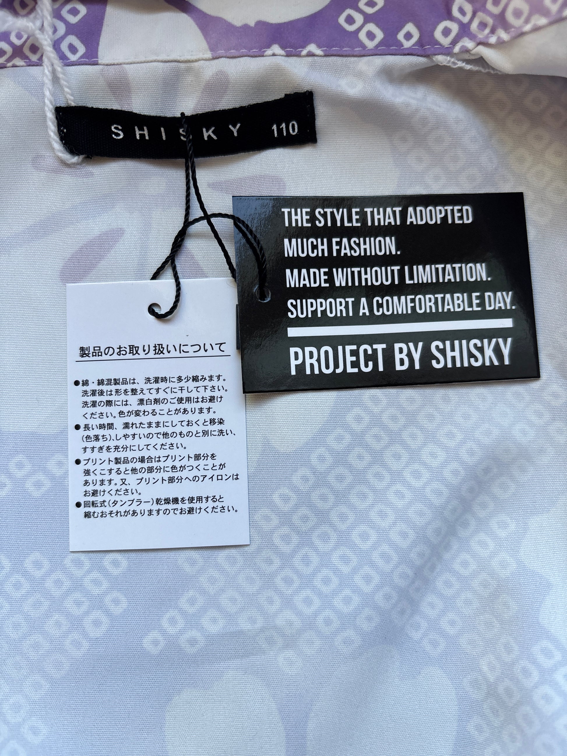 Veste et robe : couleur Lavande et Motifs floraux et effet “shibori” (motif japonais traditionnel de teinture à plis, au rendu doux et raffiné)